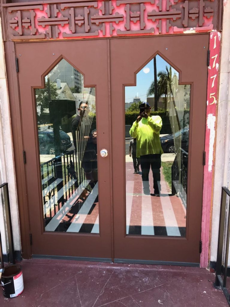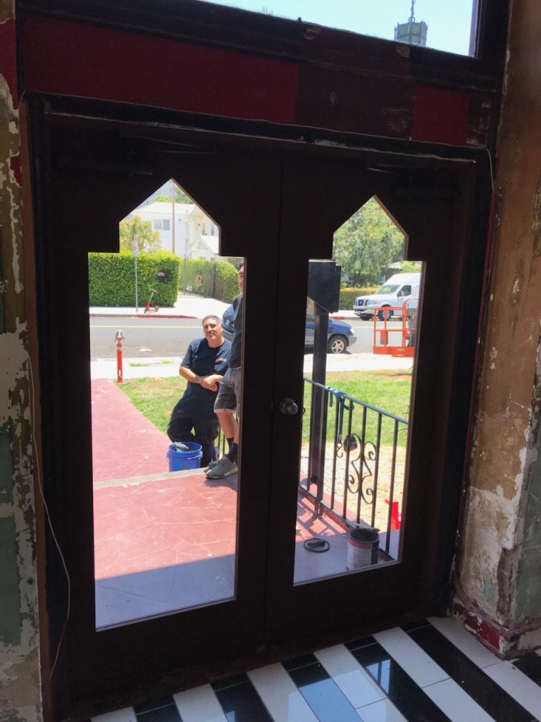 Constructed in 1925, the Nirvana Apartments building is a Historic-Cultural Monument that once inspired iconic landmarks such as the Magic Castle and Grauman’s Chinese Theater. The building owner enlisted our help to restore the entryway to its original style. Kaptive C&P’s Custom Millwork division custom manufactured a new White Oak door and frame to replicate the historic images provided. Prior to installation, we removed the existing front door and frame to make way for the new replicas.
