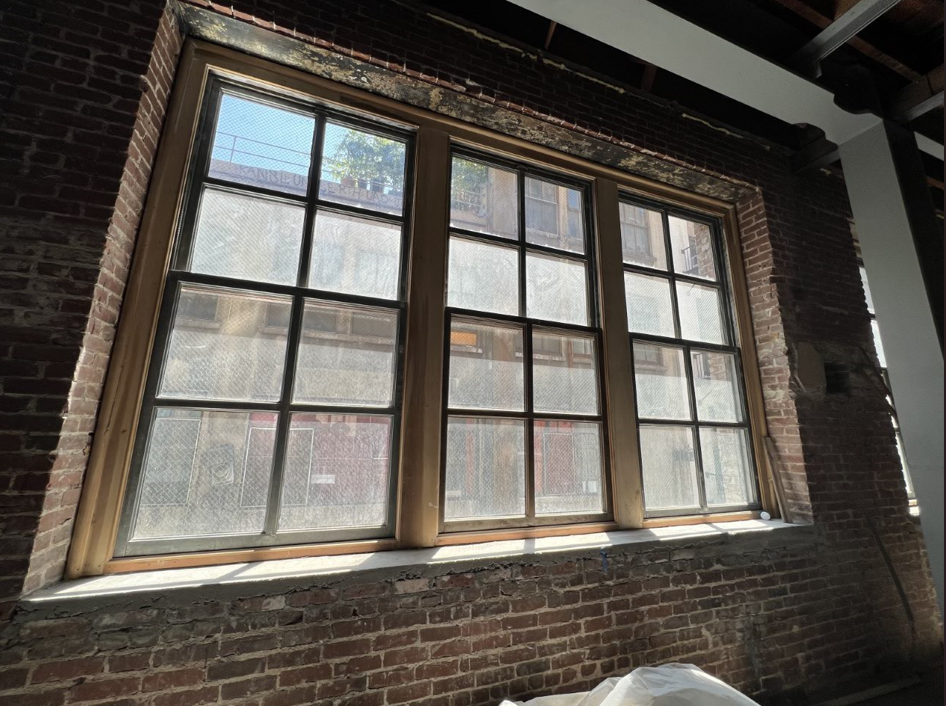 In order to restore the windows, meticulous attention to detail was essential. The wood windows on the front elevation were completely restored, with new glass installed, old paint removed, and damaged areas totally restored. The hardware was either fixed or swapped out for historically accurate components, and any broken or missing wood windows were made to order to match the originals. The building’s original charm was preserved by providing the same careful attention to the metal windows on the alley elevation.